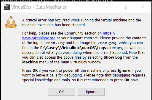 The macOS Virtualbox option is designed for genuine Apple hardware. You will not get community support from Virtualbox if you have trouble with this process, as it’s against Apple ToS.