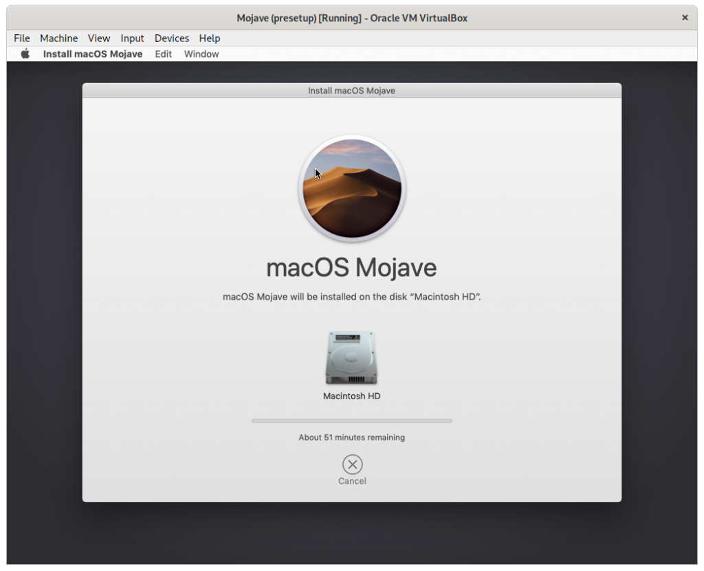 You should now have a file on the Mac desktop called ‘Mojave.iso’. Congratulations, you have your installation disc! Copy this over to where your Virtualbox is setup. The Mac is no longer needed at this point.