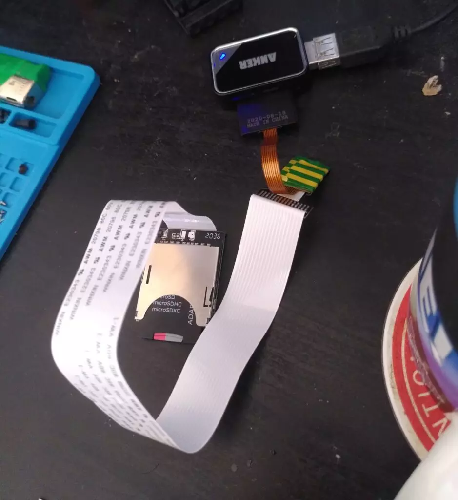 For the power port, I used a female MicroUSB to male MicroUSB variant of the ribbon cable, however the port wasn’t too strong for the repeated connecting of the power cable, so I eventually replaced it with a generic extender lead.