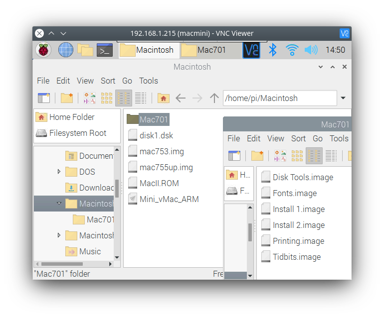 The Instructable author has pre-compiled the ARM executable you’ll need for both the Raspberry Pi and the screen size. You can download it here (or my copy if it’s since taken down). The one we’ll primarily need is Mini_vMac_ARM (other one’s good if you’re on a VNC session).